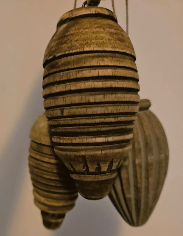 Set houten kerstballen ovaal