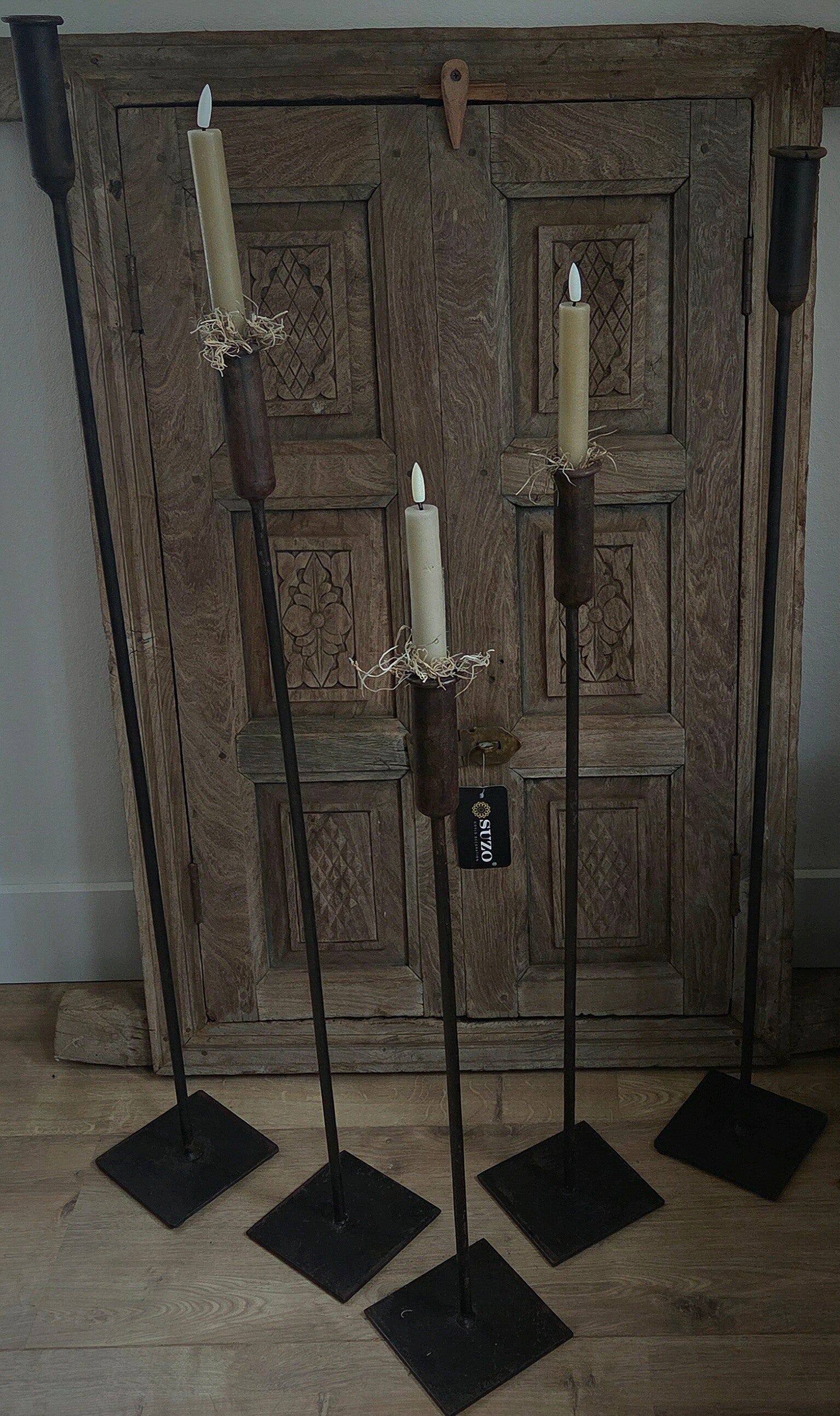 Met deze prachtige metalen kaarsenstandaard voeg je een touch van sfeer en stijl toe aan je interieur! De kandelaar is in 60,70,80,90 en 100 cm hoog en is absoluut een blikvanger in je huis. Het design past zowel in een landelijk als een sober interieur en zorgt voor een warme en gezellige sfeer.